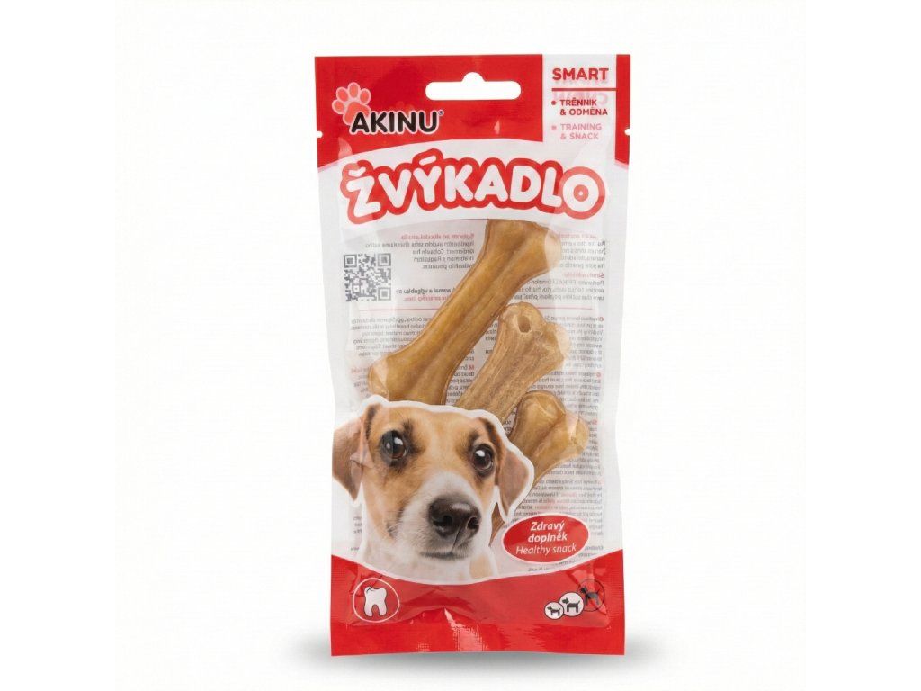 Akinu kost buvolí 8cm je dobrou žvýkací pochoutkou pro posílení žvýkacích svalů.