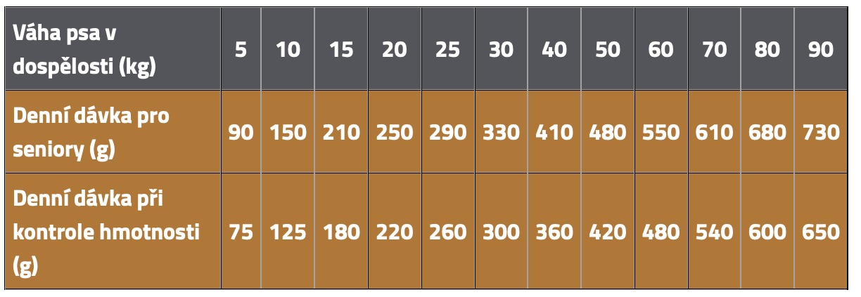 - Pro starší psy (nad 7 let) všech plemen
