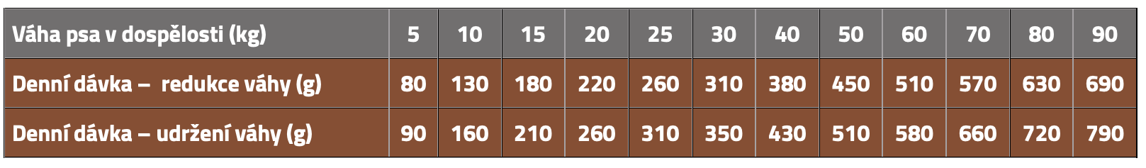 - Pro dospělé psy s nadváhou