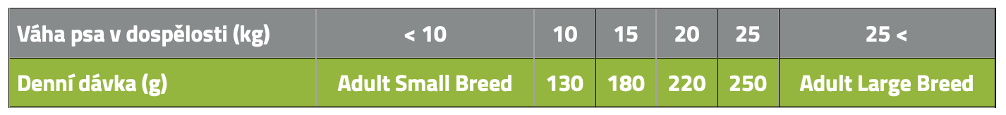 V případě, že hmotnost vašeho psa je větší než 25 kg, podávejte Adult Large Breed.