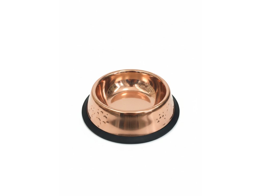 Exkluzivní vzhled: Elegantní bronzový povrch s jemným reliéfem psích tlapek dodává misce jedinečný šmrnc.